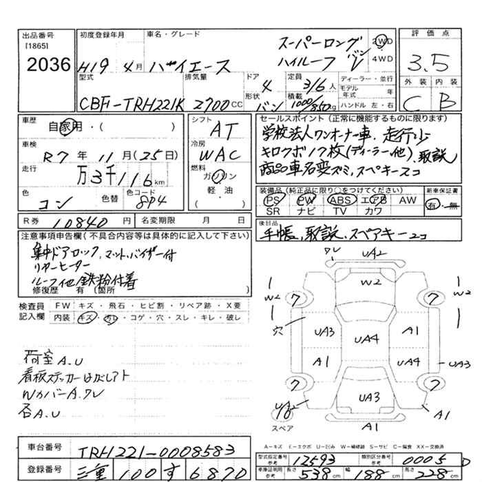 TOYOTA HIACE VAN SUPER LONG HIGH ROOF - лот 2036