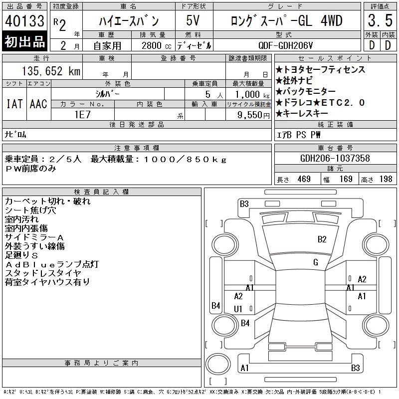 TOYOTA HIACE VAN LONG SUPER GL 4WD - лот 40133