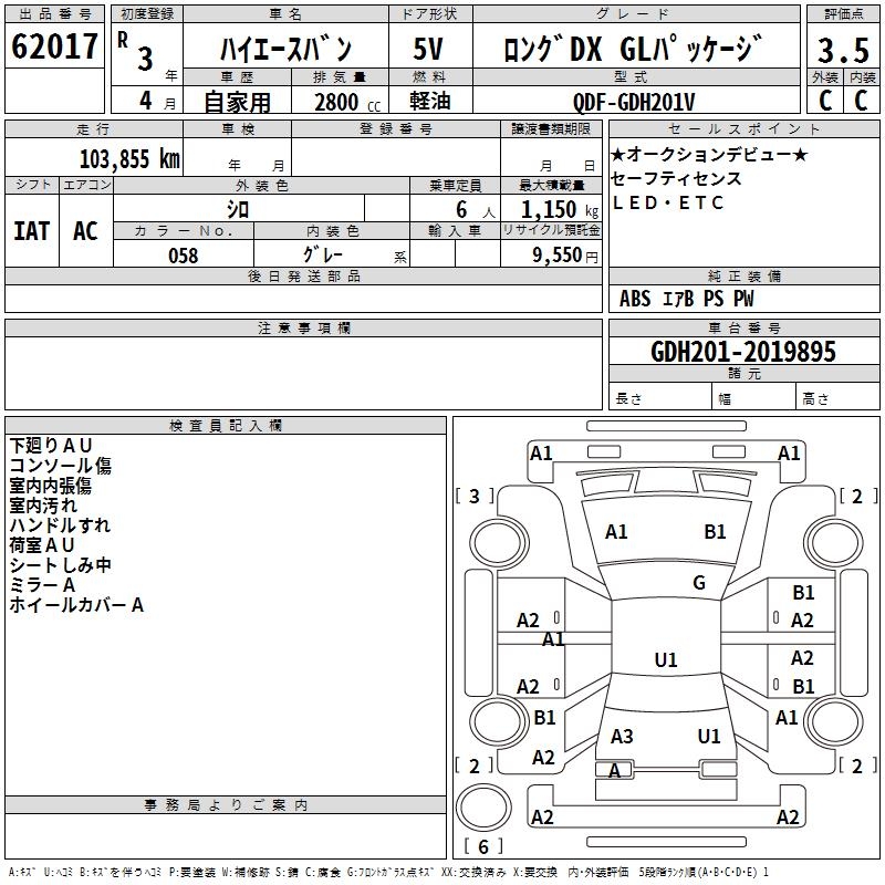 TOYOTA HIACE VAN LONG DX GL PACKAGE - лот 62017