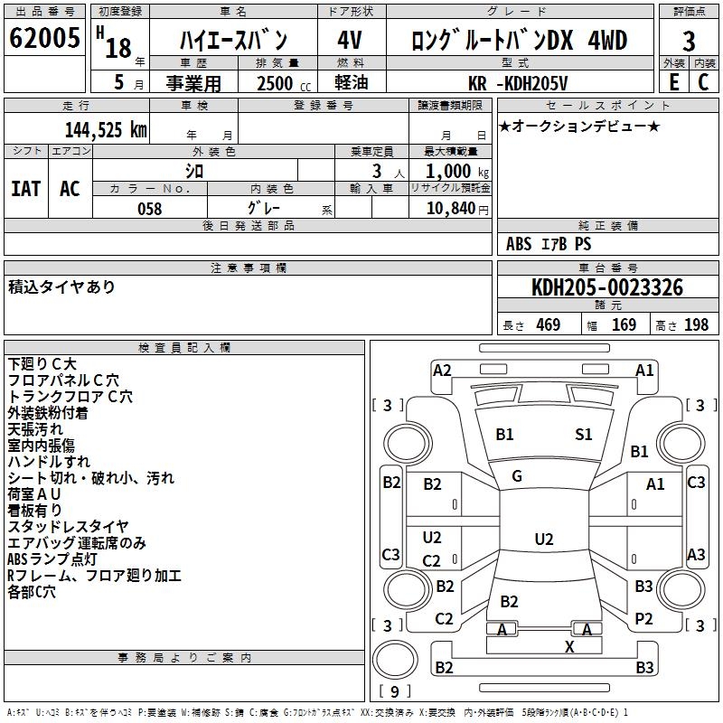 TOYOTA HIACE VAN LONG ROOTVAN DX 4WD - лот 62005