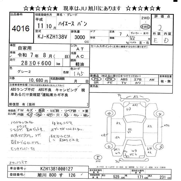 TOYOTA HIACE VAN 4WD - лот 4016
