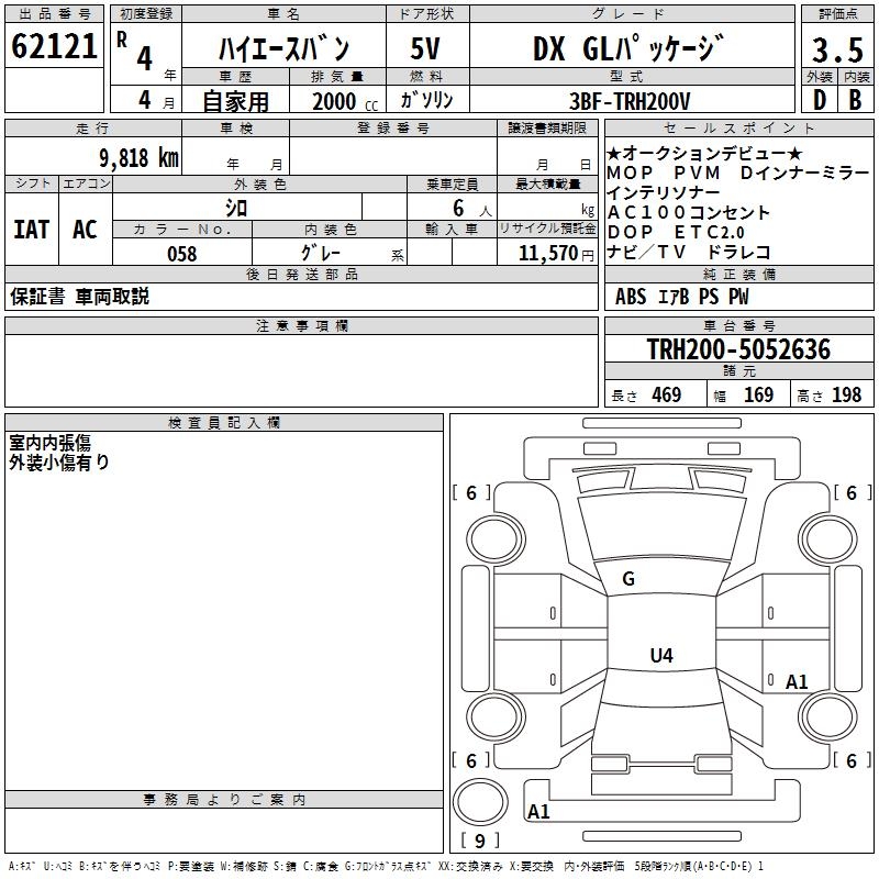 TOYOTA HIACE VAN DX GL PACKAGE - лот 62121