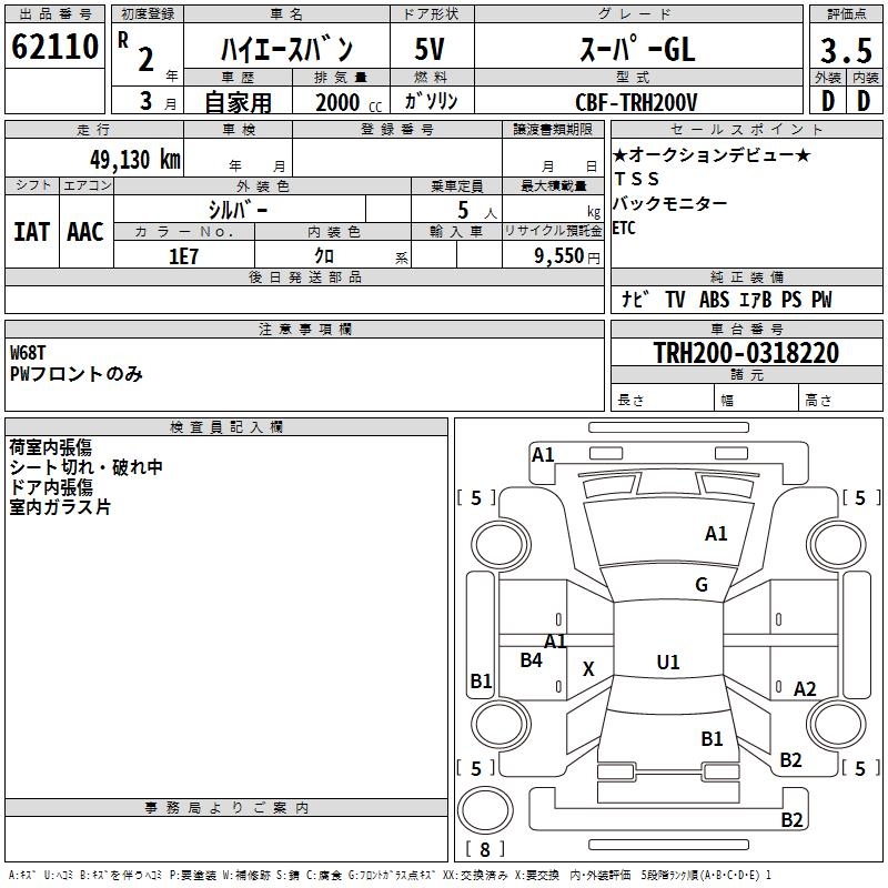 TOYOTA HIACE VAN SUPER GL - лот 62110