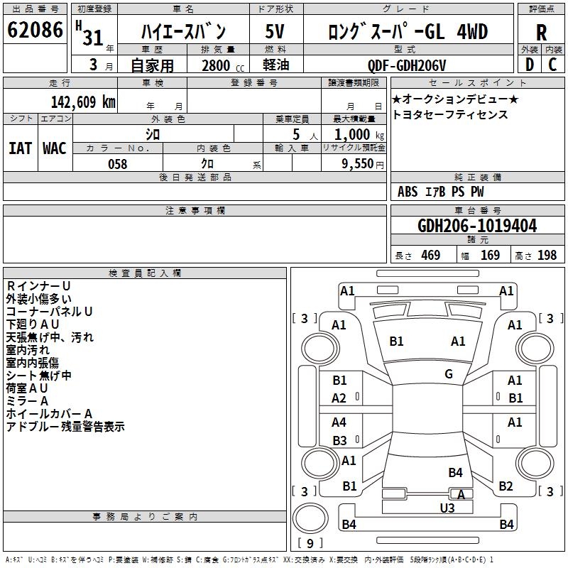 TOYOTA HIACE VAN LONG SUPER GL 4WD - лот 62086