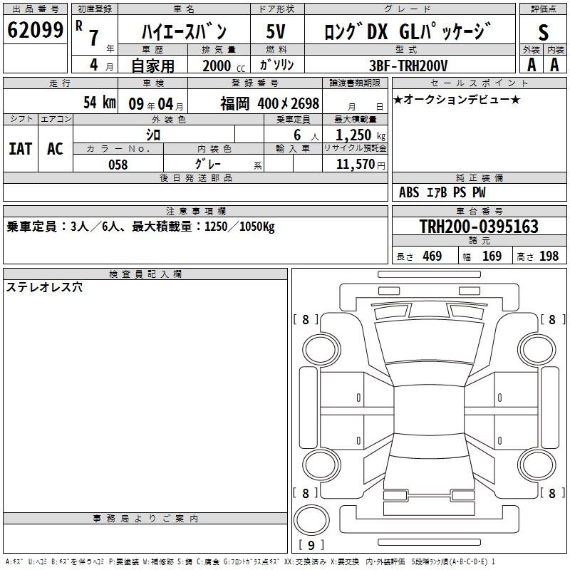 TOYOTA HIACE VAN LONG DX GL PACKAGE - лот 62099