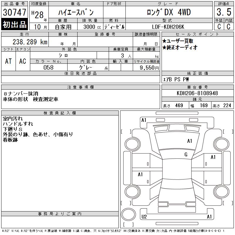 TOYOTA HIACE VAN LONG DX 4WD - лот 30747