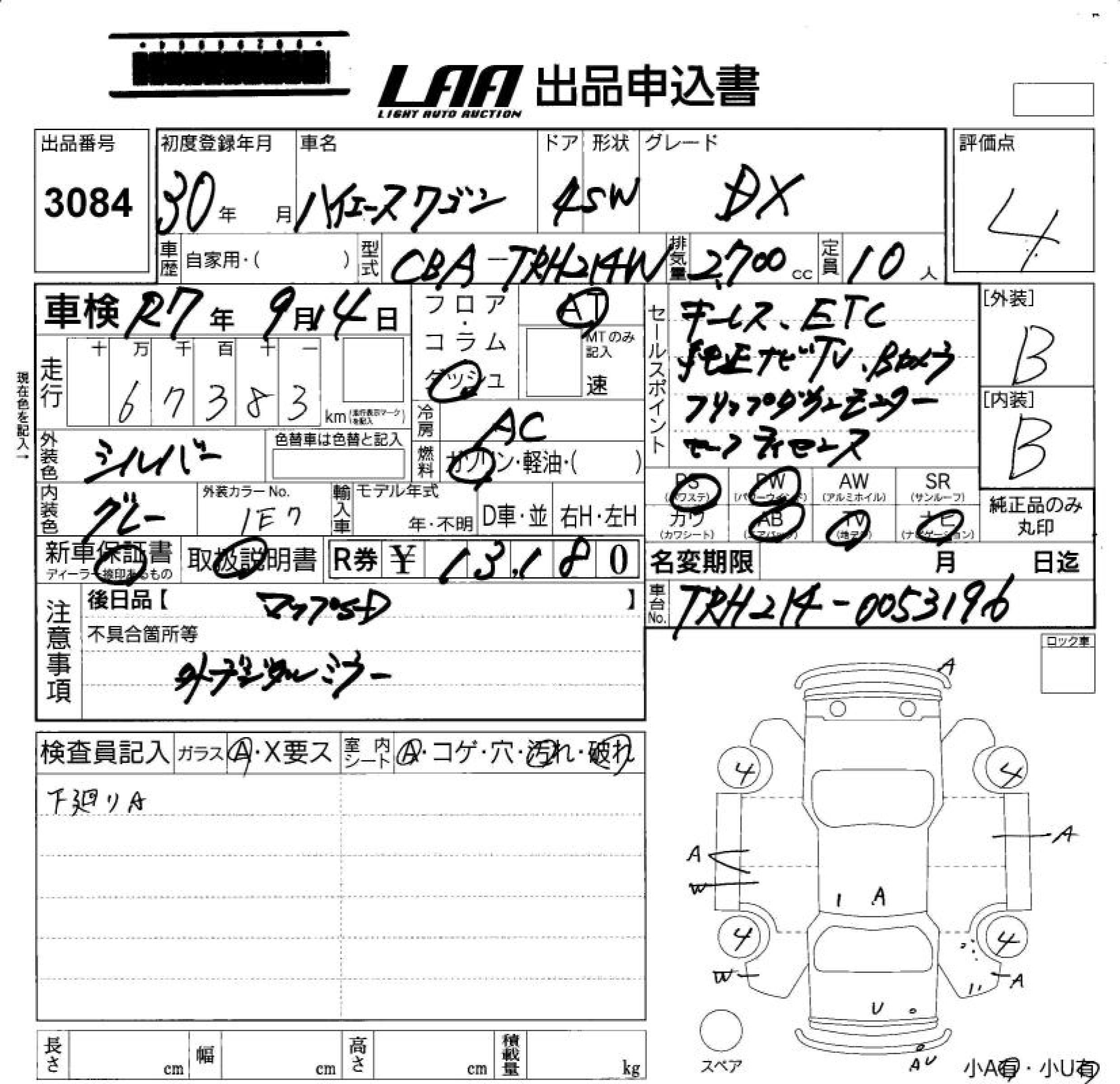 TOYOTA HIACE WAGON DX - лот 3084