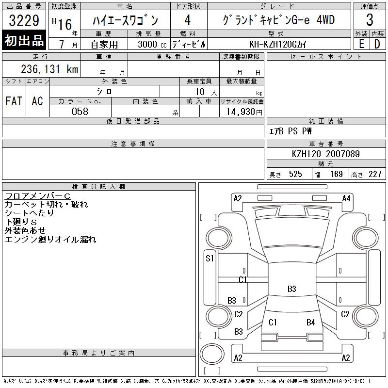 TOYOTA HIACE WAGON GRANDCABIN G-E 4WD - лот 3229