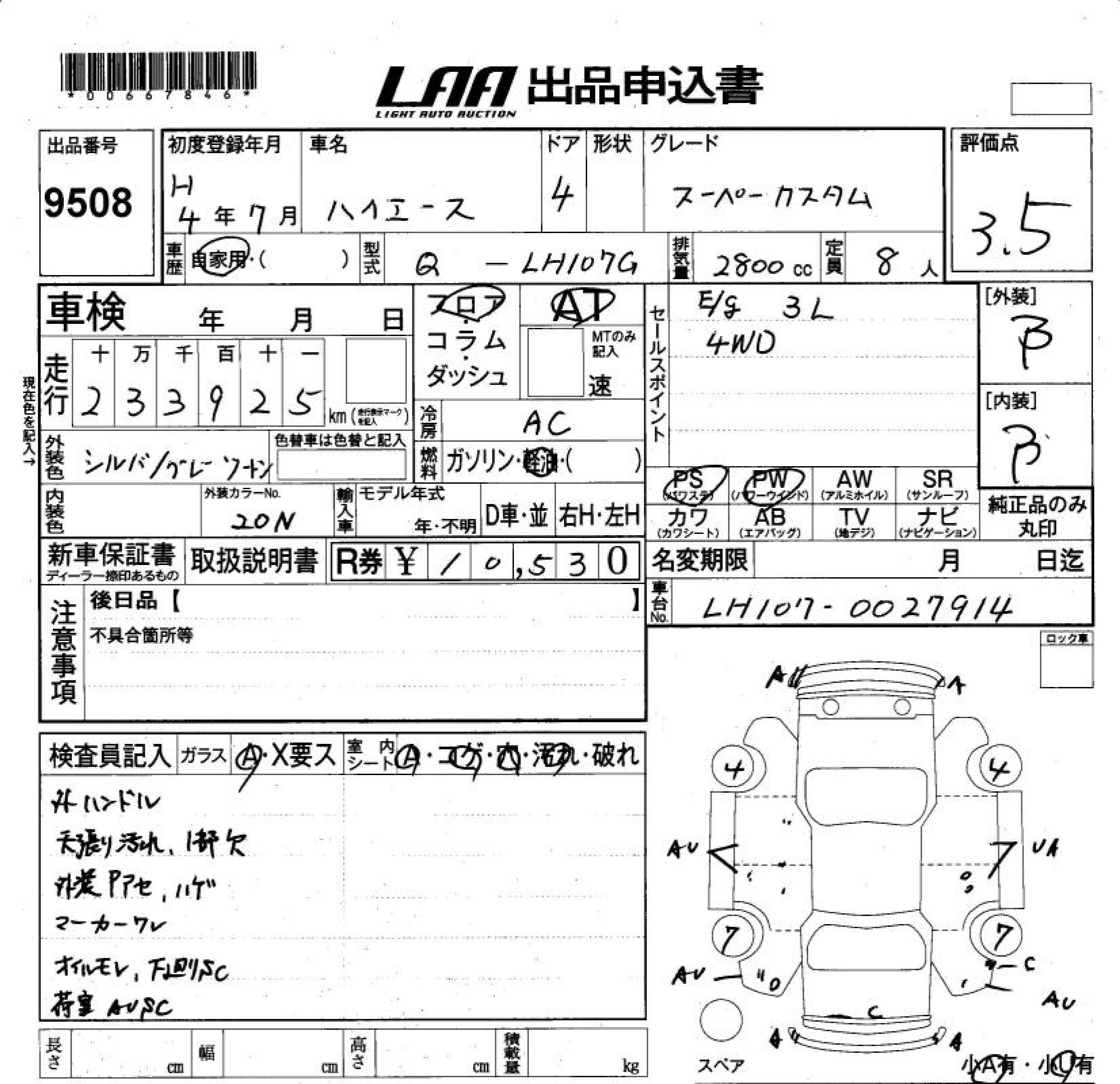 TOYOTA HIACE WAGON SUPER CUSTOM - лот 9508