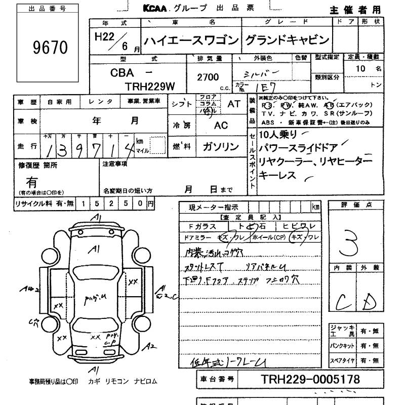 TOYOTA HIACE WAGON GRANDCABIN - лот 9670