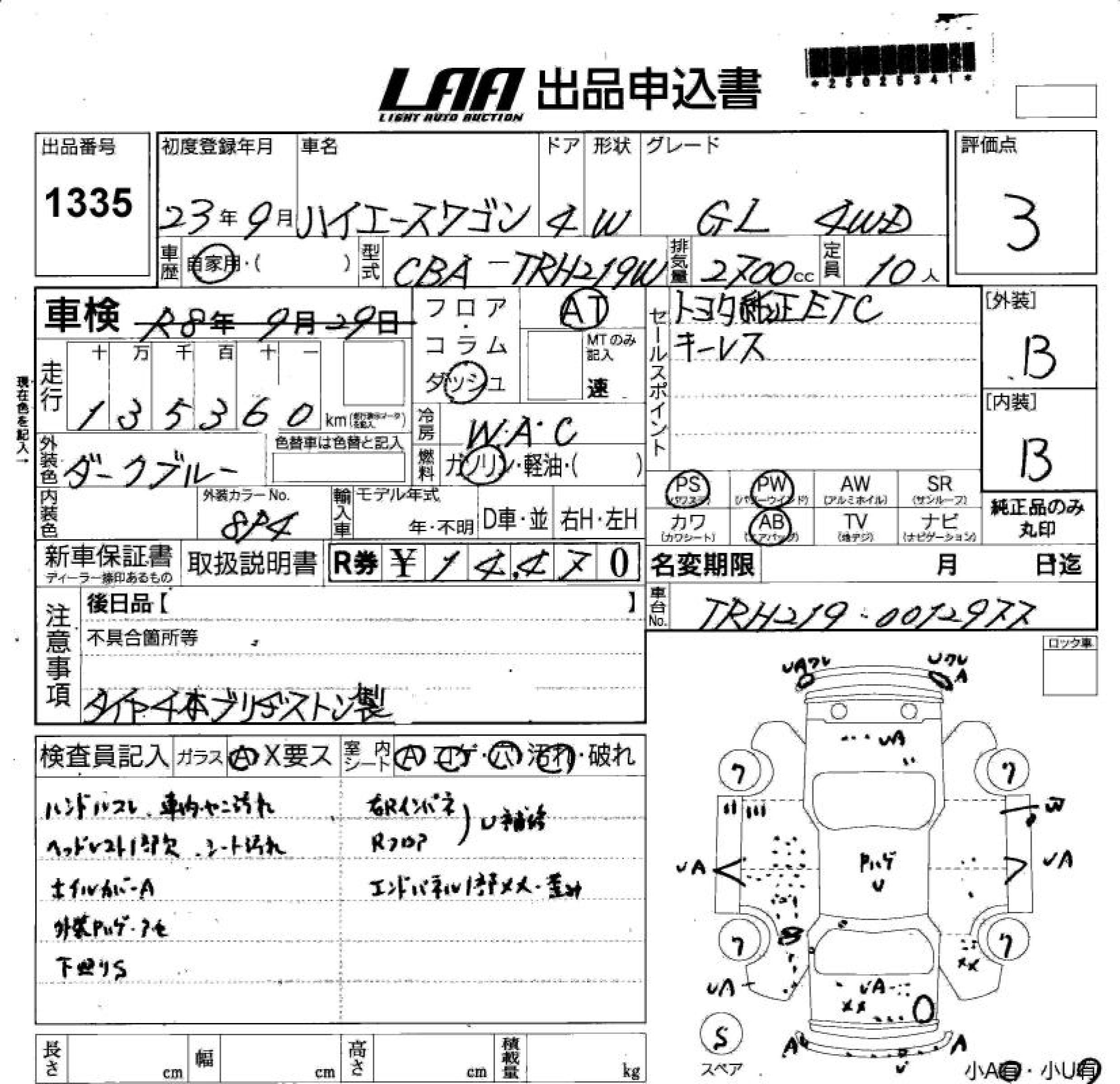 TOYOTA HIACE WAGON GL 4WD - лот 1335