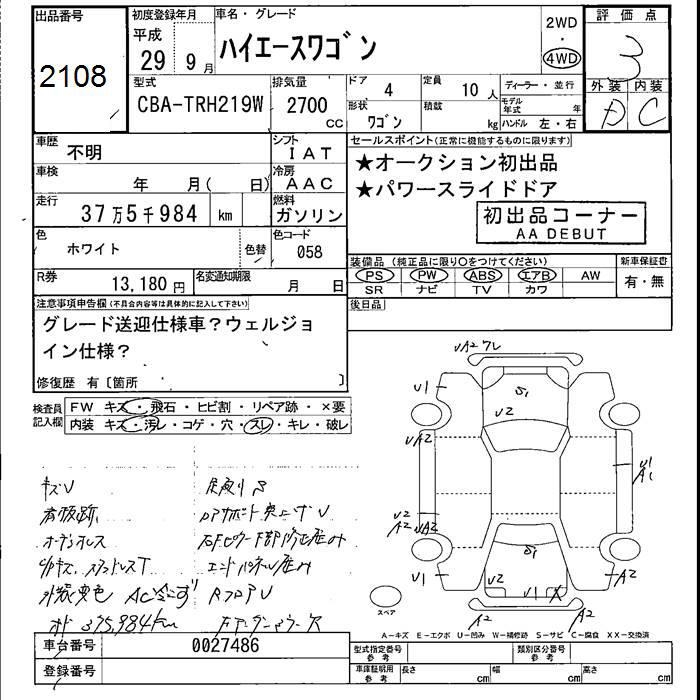 TOYOTA HIACE WAGON 4WD - лот 2108