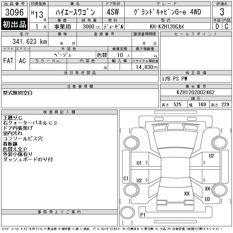 TOYOTA HIACE WAGON GRANDCABIN G-E 4WD - лот 3096