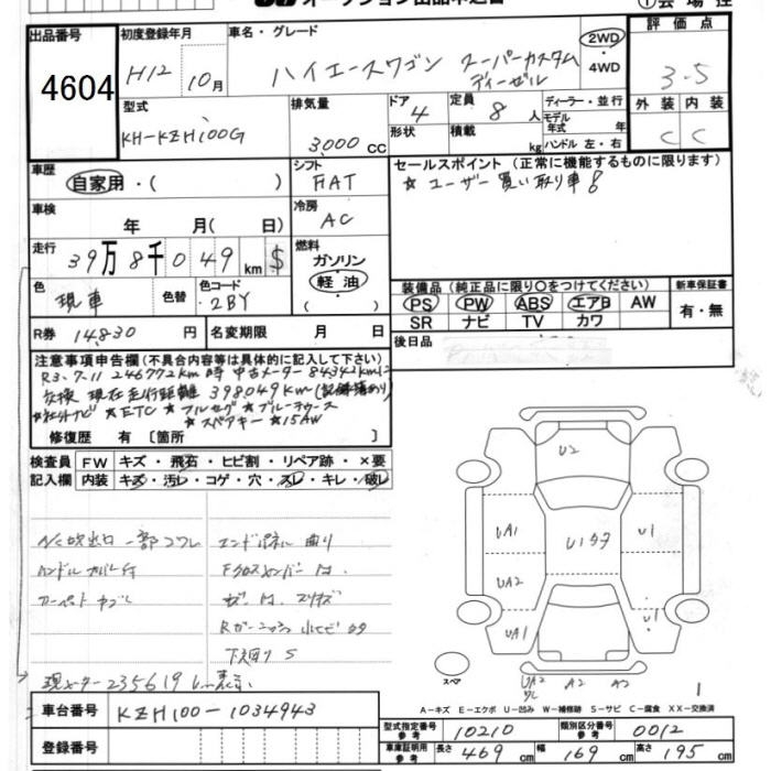 TOYOTA HIACE WAGON SUPER CUSTOM DIESEL - лот 4604