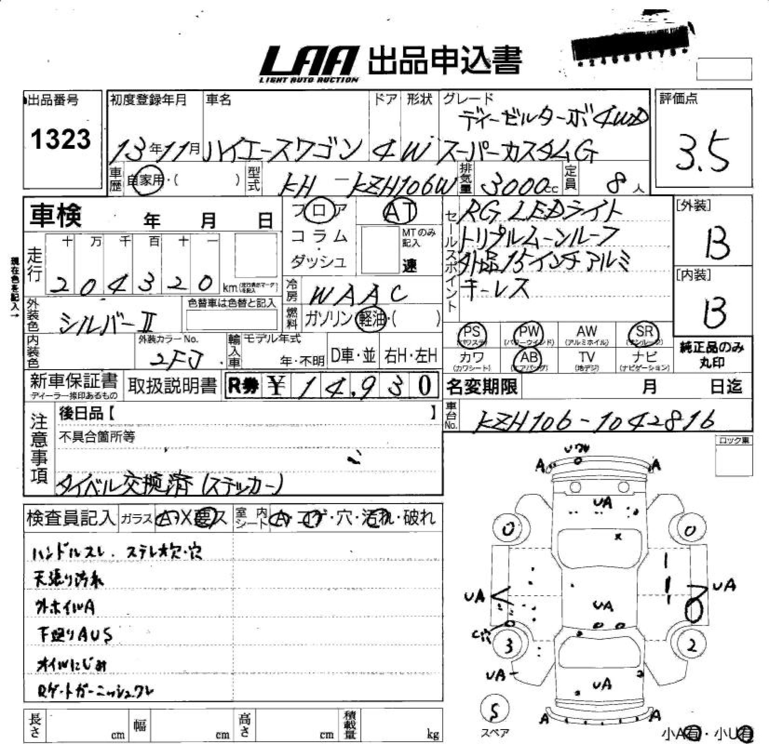 TOYOTA HIACE WAGON SUPER CUSTOM G D-TB - лот 1323
