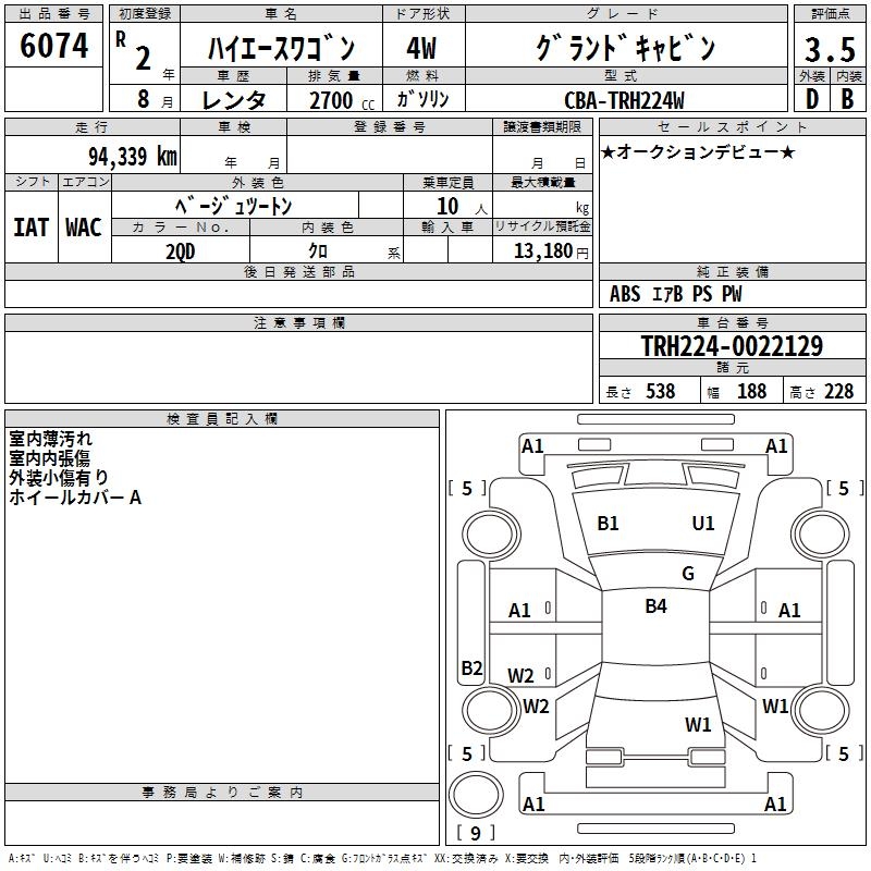 TOYOTA HIACE WAGON GRANDCABIN - лот 6074