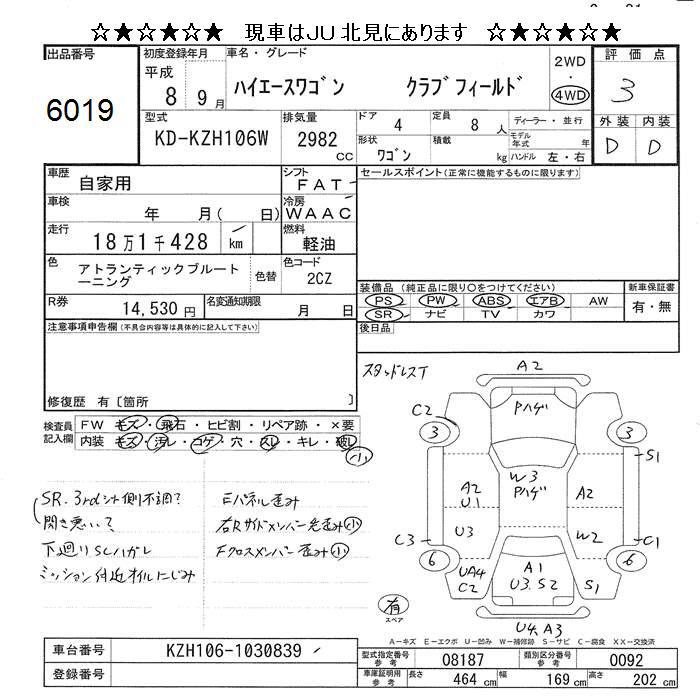 TOYOTA HIACE WAGON 4WD CLUB FIELD - лот 6019
