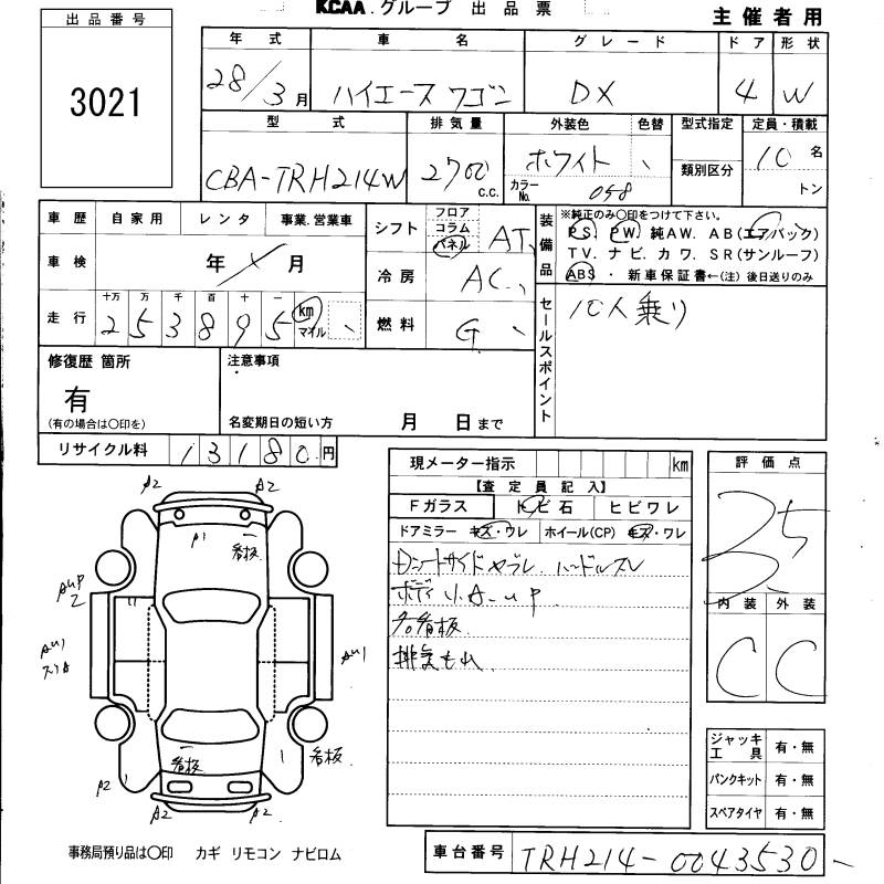 TOYOTA HIACE WAGON DX - лот 3021