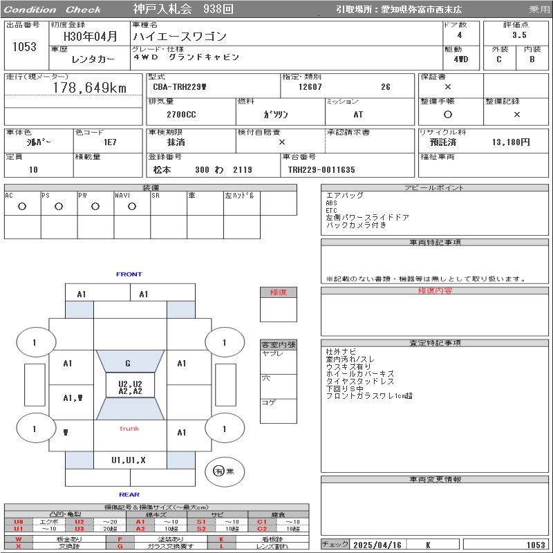 TOYOTA HIACE WAGON 4WD GRANDCABIN - лот 1053