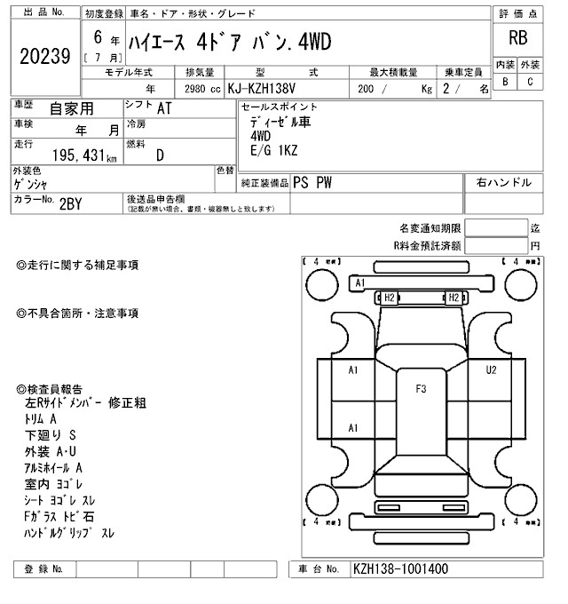 TOYOTA HIACE VAN.4WD - лот 20239