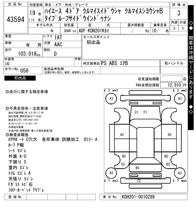 TOYOTA HIACE KRU MY S USE CAR B TYPE ROOF SIDE WINDOW NOT EQUIPPED - лот 43594