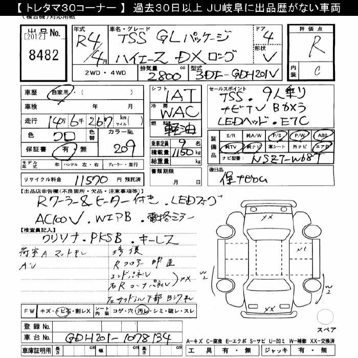 TOYOTA HIACE DX LONG GL PACKAGE TSS - лот 8482