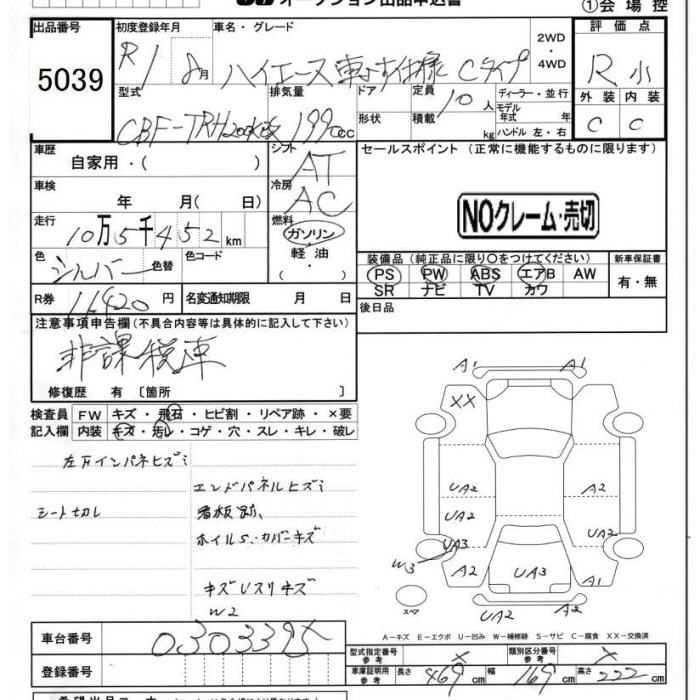 TOYOTA HIACE KRU MY S USE C TYPE - лот 5039
