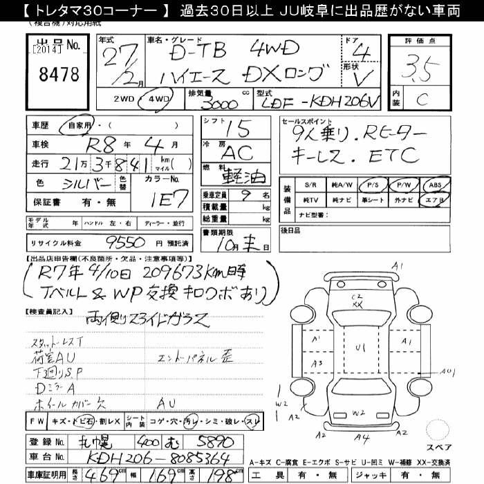 TOYOTA HIACE 4WD DX LONG D-TB - лот 8478
