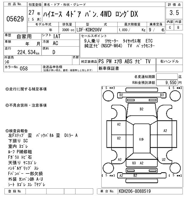 TOYOTA HIACE LONG DX - лот 5629