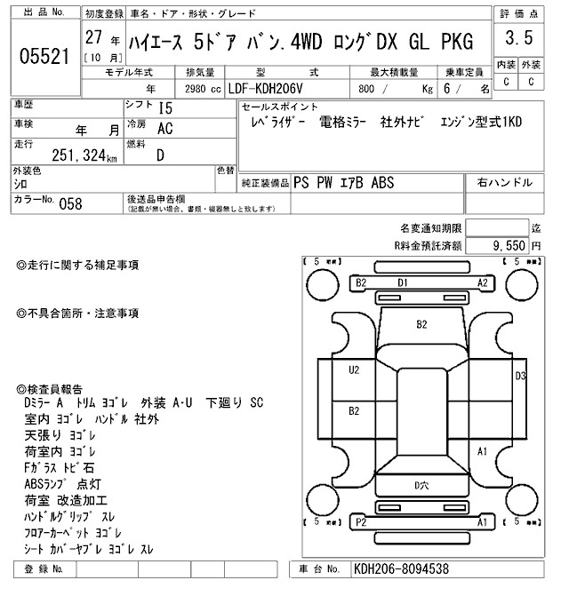 TOYOTA HIACE LONG DX GL PKG - лот 5521