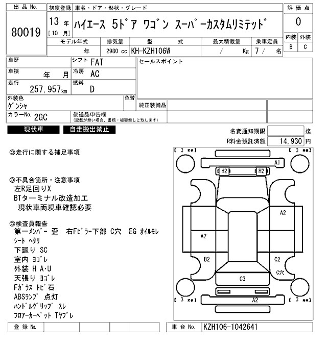 TOYOTA HIACE WAGON - лот 80019