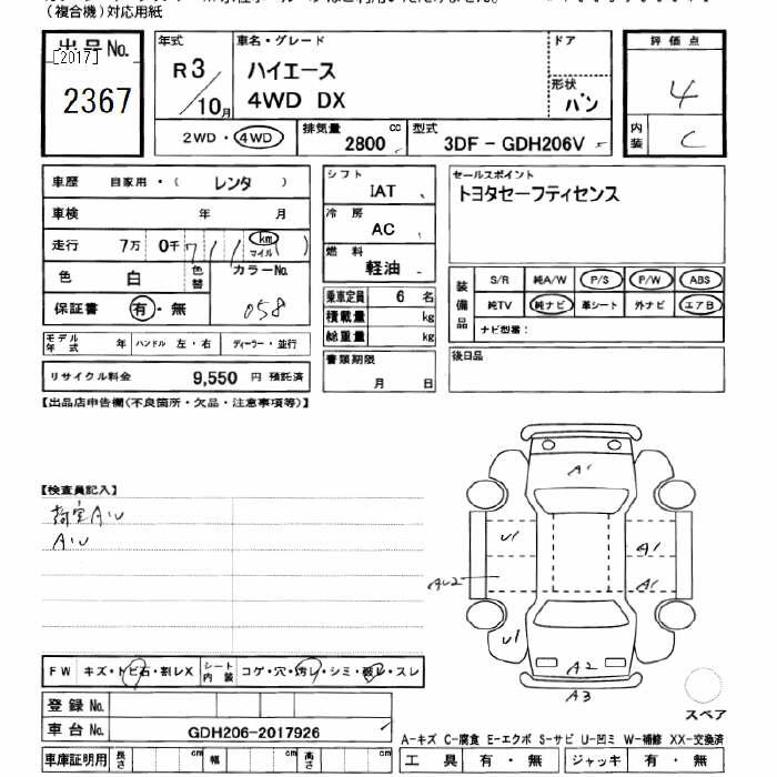 TOYOTA HIACE 4WD DX - лот 2367