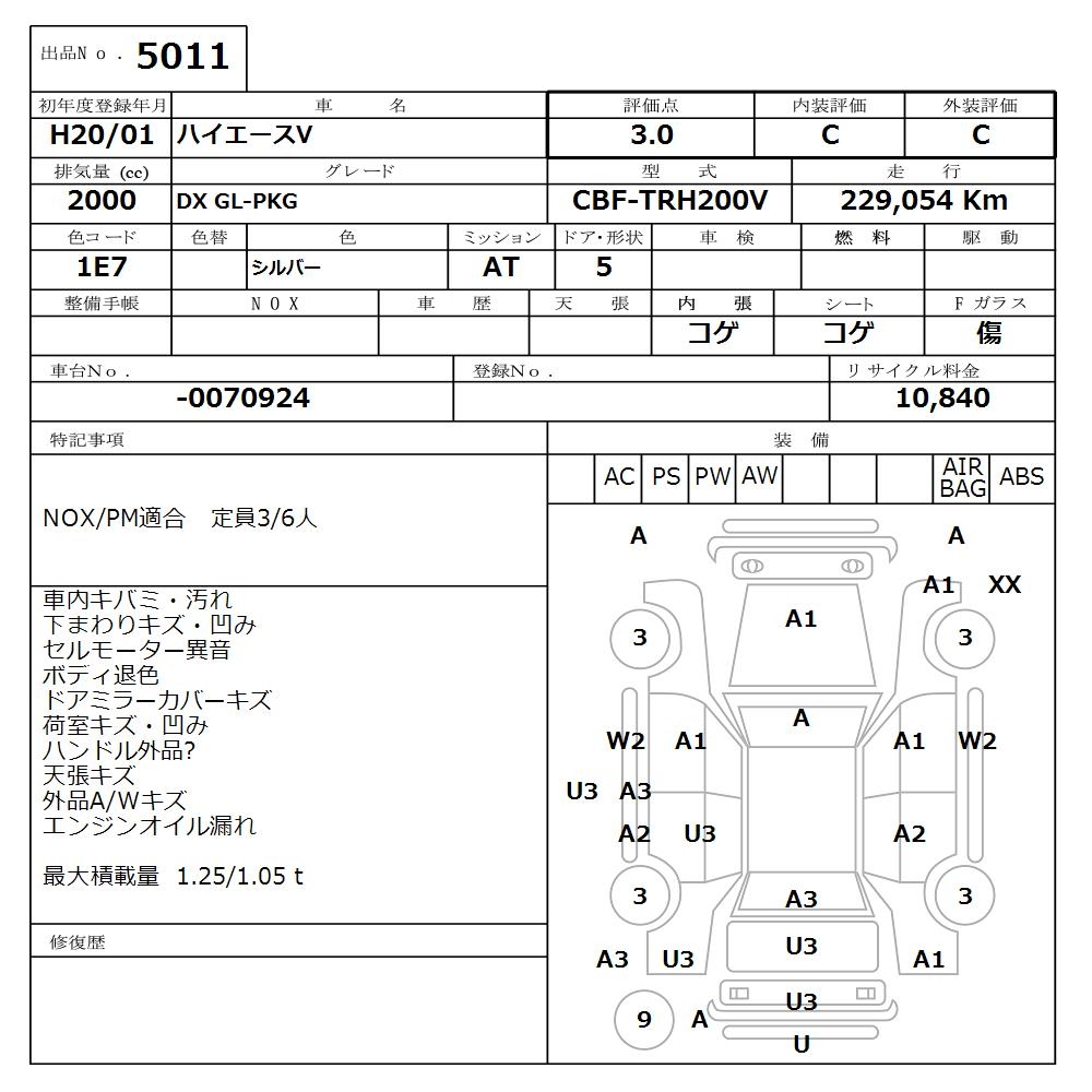 TOYOTA HIACE VAN - лот 5011