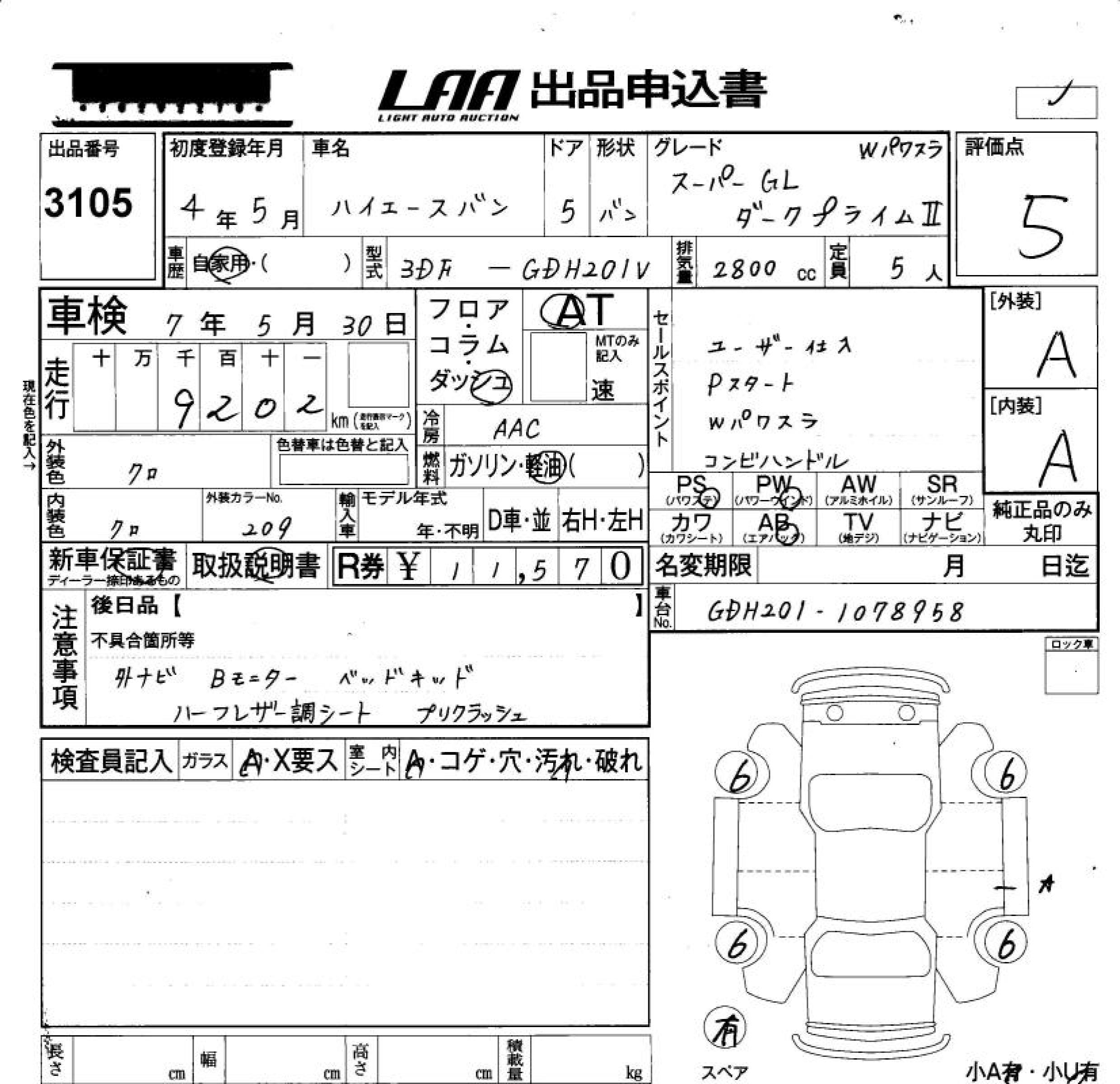 TOYOTA HIACE VAN - лот 3105