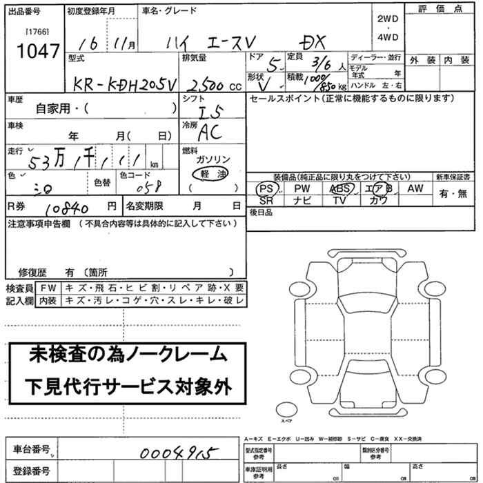 TOYOTA HIACE VAN - лот 1047