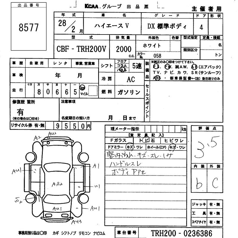 TOYOTA HIACE VAN - лот 8577