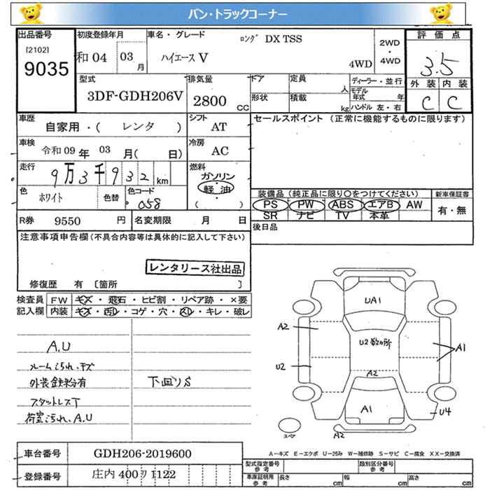 TOYOTA HIACE VAN - лот 9035