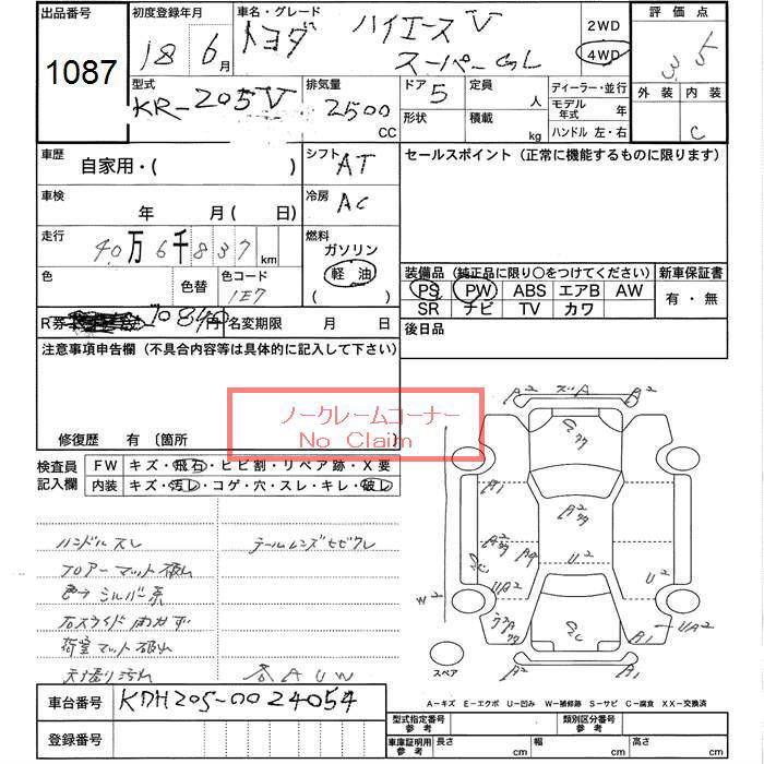 TOYOTA HIACE VAN - лот 1087