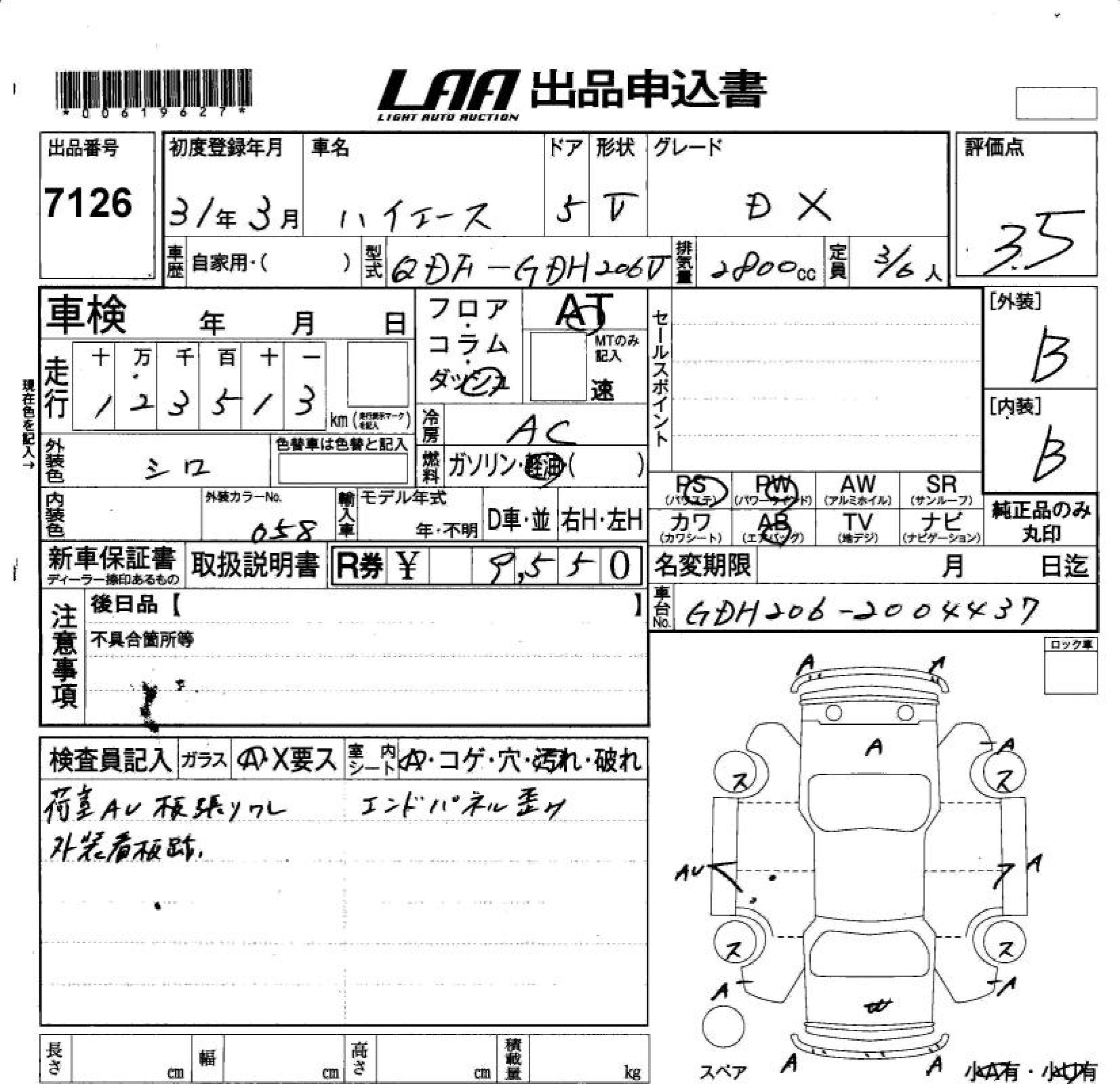 TOYOTA HIACE VAN - лот 7126