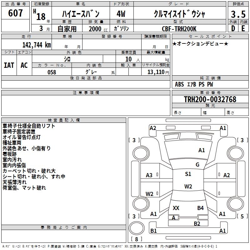 TOYOTA HIACE VAN - лот 607