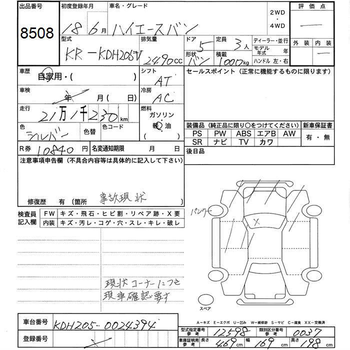 TOYOTA HIACE VAN - лот 8508