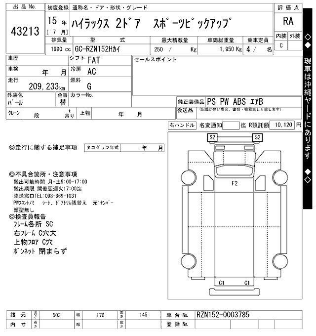 TOYOTA HILUX PICK UP - лот 43213