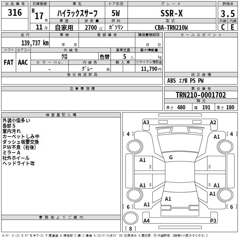 TOYOTA HILUX SURF - лот 316