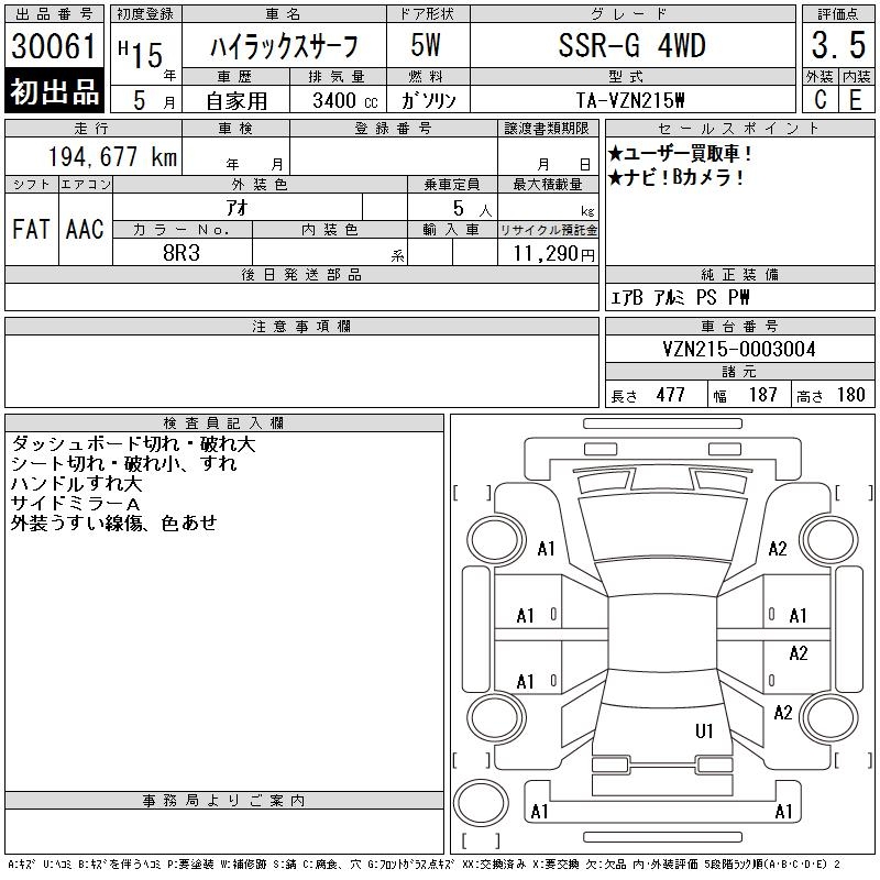 TOYOTA HILUX SURF - лот 30061