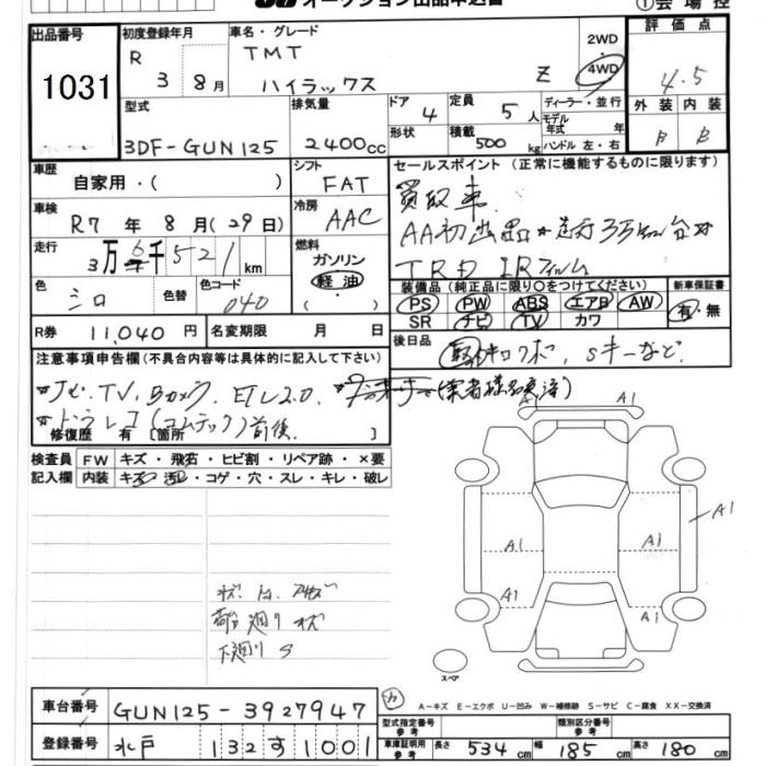 TOYOTA HILUX PICK UP 4WD Z - лот 1031