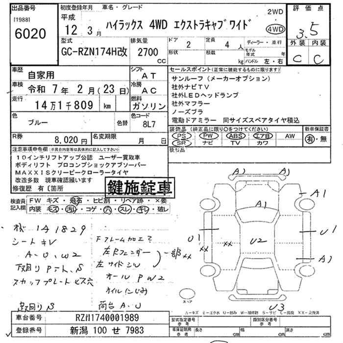 TOYOTA HILUX PICK UP 4WD extra cab wide - лот 6020