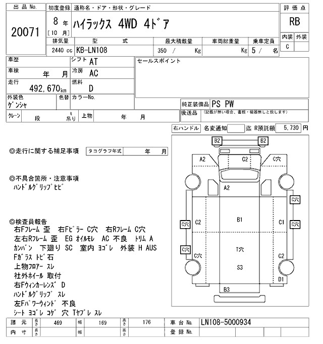 TOYOTA HILUX PICK UP 4WD - лот 20071