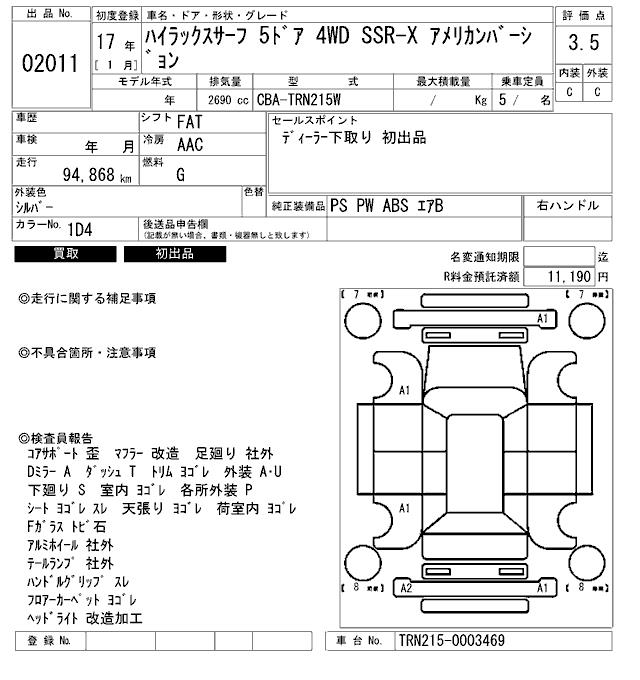 TOYOTA HILUX SURF SSR-X AMERICAN VERSION - лот 2011