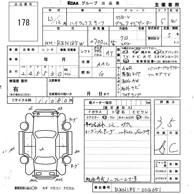TOYOTA HILUX SURF SSR-V BLACK NAVIGATOR - лот 178