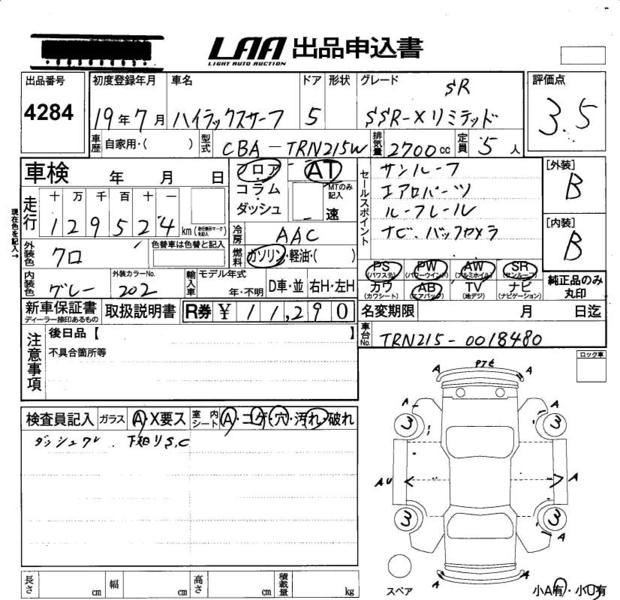 TOYOTA HILUX SURF SSR-X LIMITED SR - лот 4284